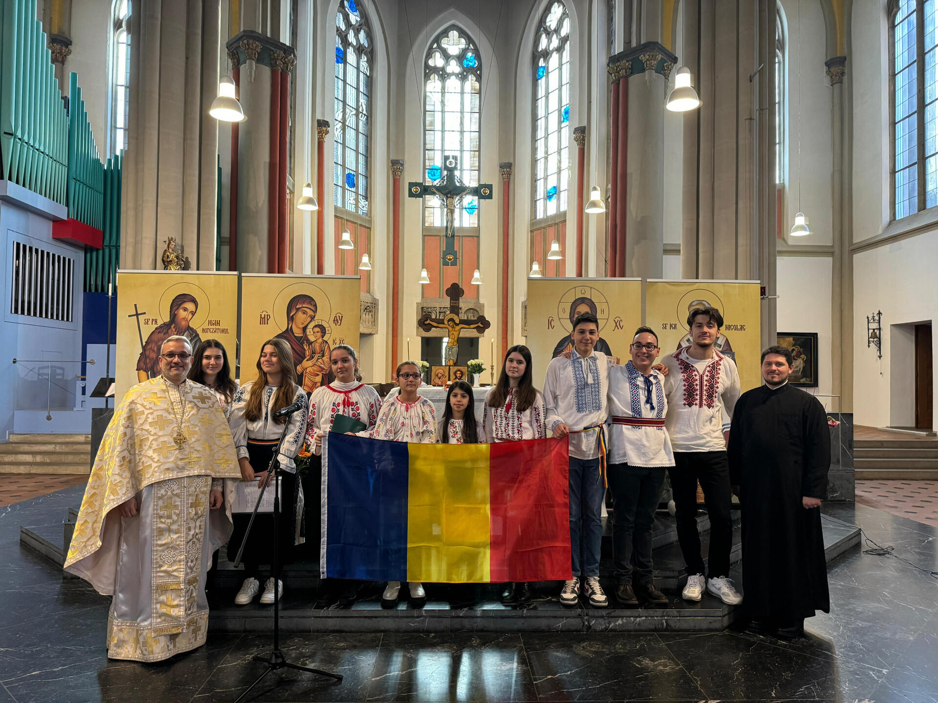 Der 1. Dezember 2023 war ein einzigartiger Moment für die Pfarrei Düsseldorf. Zum ersten Mal wurde der Nationalfeiertag Rumäniens in Zusammenarbeit mit dem Verband der Rumänischen Ärzte in NRW und dem Verband der Rumänischen Lehrer in NRW organisiert.Gemeinsam mit den beiden Verbänden wurde ein spezielles Programm zu Ehren des Nationalfeiertags ausgerichtet, das künstlerische Darbietungen und kurze Ansprachen umfasste.Das Event begann mit dem Te Deum-Gottesdienst. Vor dem künstlerischen Programm sprachen der Erzpriester Dr. Iosif-Cristian Rădulescu, der Pfarrer der rumänisch-orthodoxen Gemeinde in Düsseldorf, Frau Dr. Dumitrița Gafencu, Sprecherin des Verbands der Rumänischen Ärzte in NRW, und Frau Professor Simona Ilea Pop, Vizepräsidentin des Verbands der Rumänischen Lehrer in NRW.