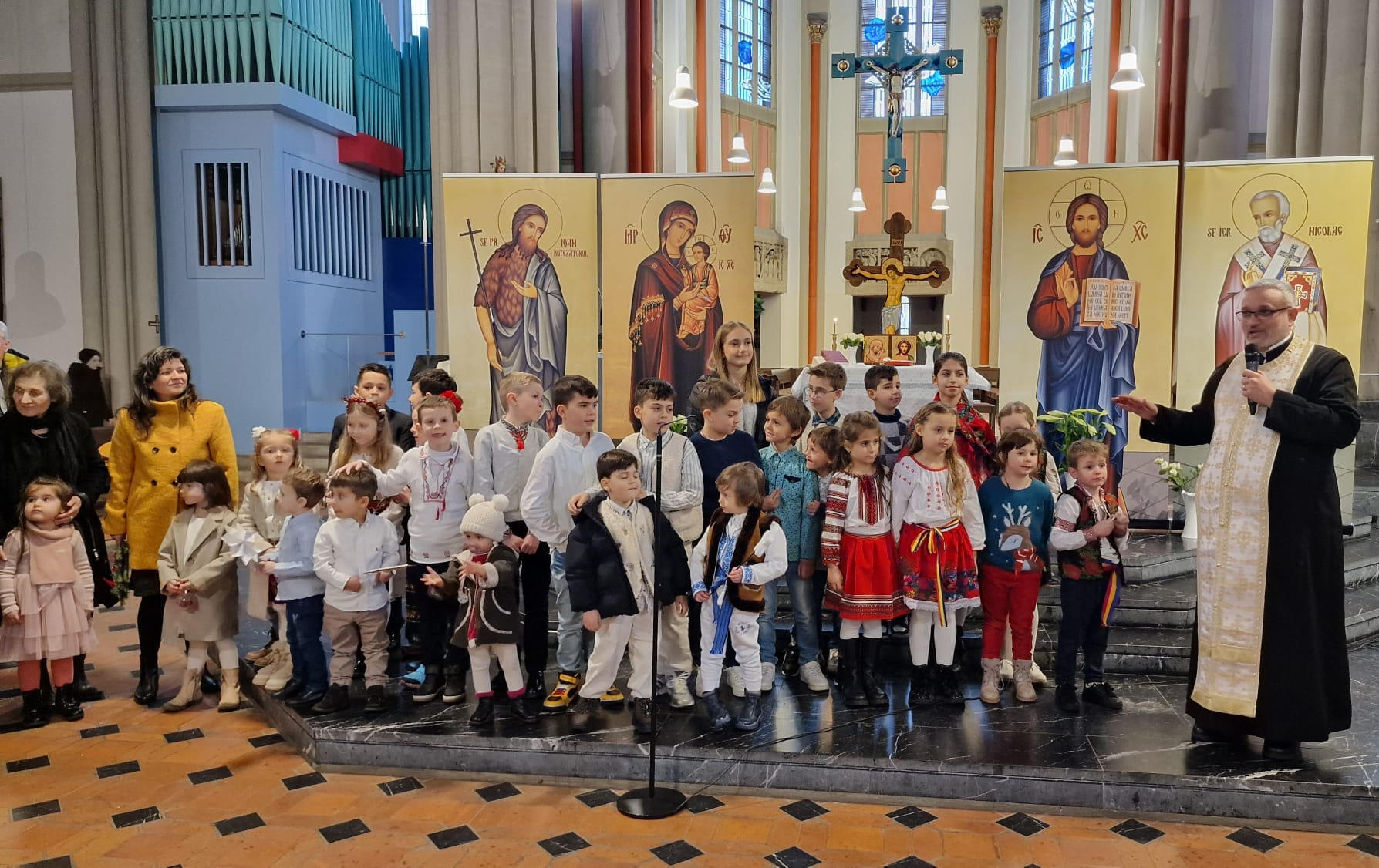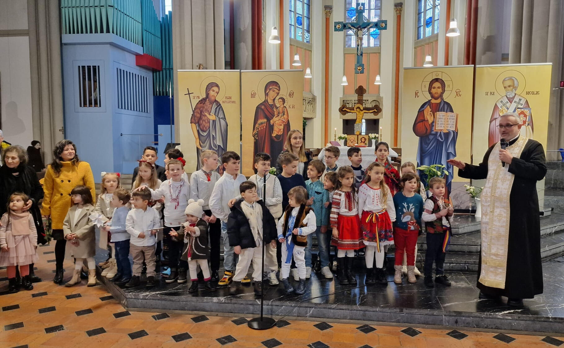 Am Sonntag, dem 10. Dezember 2023, fand nach der Heiligen Liturgie in der Pfarrei Düsseldorf das traditionelle Fest des Heiligen Bischofs Nikolaus, das zweite Kirchweihfest der Pfarrei, statt. Wie jedes Jahr ist das Fest des Heiligen Nikolaus den Kindern und dem festlichen Ereignis gewidmet, das von der Sonntagsschule organisiert wird.Die Sonntagsschule ist ein langjähriges Projekt unserer Pfarrei, das mittlerweile 11 Jahre besteht und einer der Pfeiler unserer pastoralen Aktivitäten und eine geistige und soziale Zuflucht für die teilnehmenden Kinder ist. Dies ist den engagierten Bemühungen der Lehrerinnen Ioana Pașca und Simona Ilea Pop zu verdanken, beide Mitglieder des Verbands der Rumänischen Lehrer in NRW.Dieses Jahr hatte das Nikolausfest das Thema des Lichts, das Menschen in die Welt bringen können, wenn sie Glauben, Hoffnung und Liebe lebendig halten und durch sie alle anderen Tugenden. Sowohl die Gruppe der Jugendlichen als auch die Gruppe der Vorschulkinder und Grundschulkinder nahmen mit einem individuellen Beitrag teil, der die Freude des Wartens auf das Fest der Geburt des Herrn mit einem reinen Herzen den Anwesenden übermittelte.Die Nikolausgeschenke wurden vollständig von den Mitgliedern des Verbands der Rumänischen Ärzte in NRW www.amedro-nrw.de gestiftet.„Wir brauchen geeignete Rahmenbedingungen, um unsere Kinder geistig wachsen zu lassen. Sie möchten gesehen, geschätzt und ermutigt werden, Schönes zu tun. Deshalb ist die Aufmerksamkeit für das geistige Wachstum derjenigen, die die Zukunft unserer Kirche darstellen, eine wesentliche Bedingung jeder authentischen orthodoxen Pastoralarbeit.“ Prot. Iosif-Cristian Dr. Rădulescu