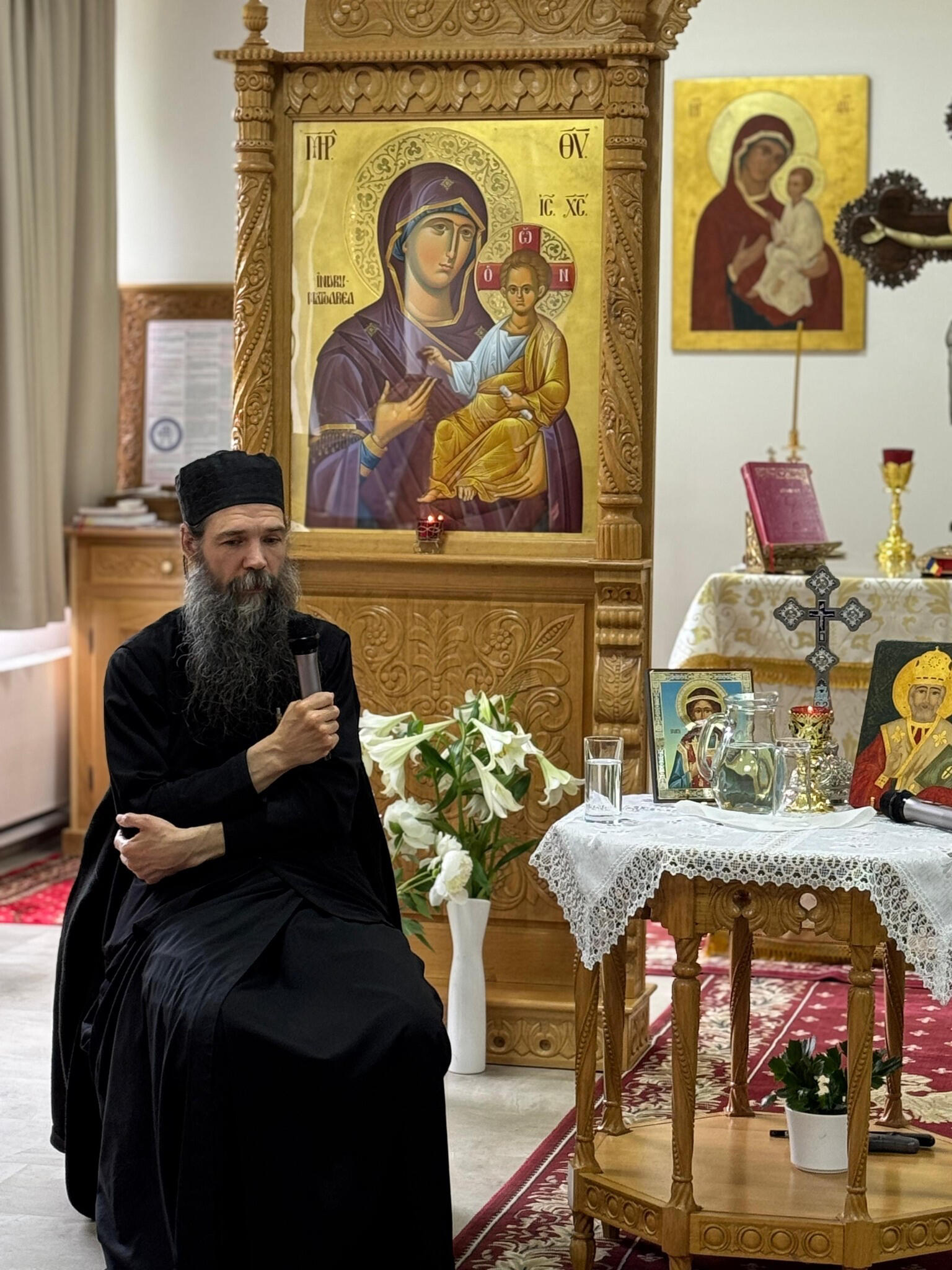 Am Sonntag, dem 4. Mai 2025, fand in der Gemeinde Düsseldorf ein außergewöhnlicher geistlicher Abend mit dem Hieromönch Vater Nil vom „Heiligen-Spiridon“-Skit in Geilnau, Deutschland, statt.Vater Nil sprach über das Gebet und gab dabei wertvolle, konkrete Ratschläge für dessen praktische Umsetzung.Es wurden Themen wie die Qualität und Dauer des Gebets sowie die inneren Zustände, die das Gebet begleiten sollten, behandelt.Darüber hinaus beantwortete der ehrwürdige Vater Nil die Fragen der Anwesenden und schuf so eine Atmosphäre tiefgehenden geistlichen Dialogs.