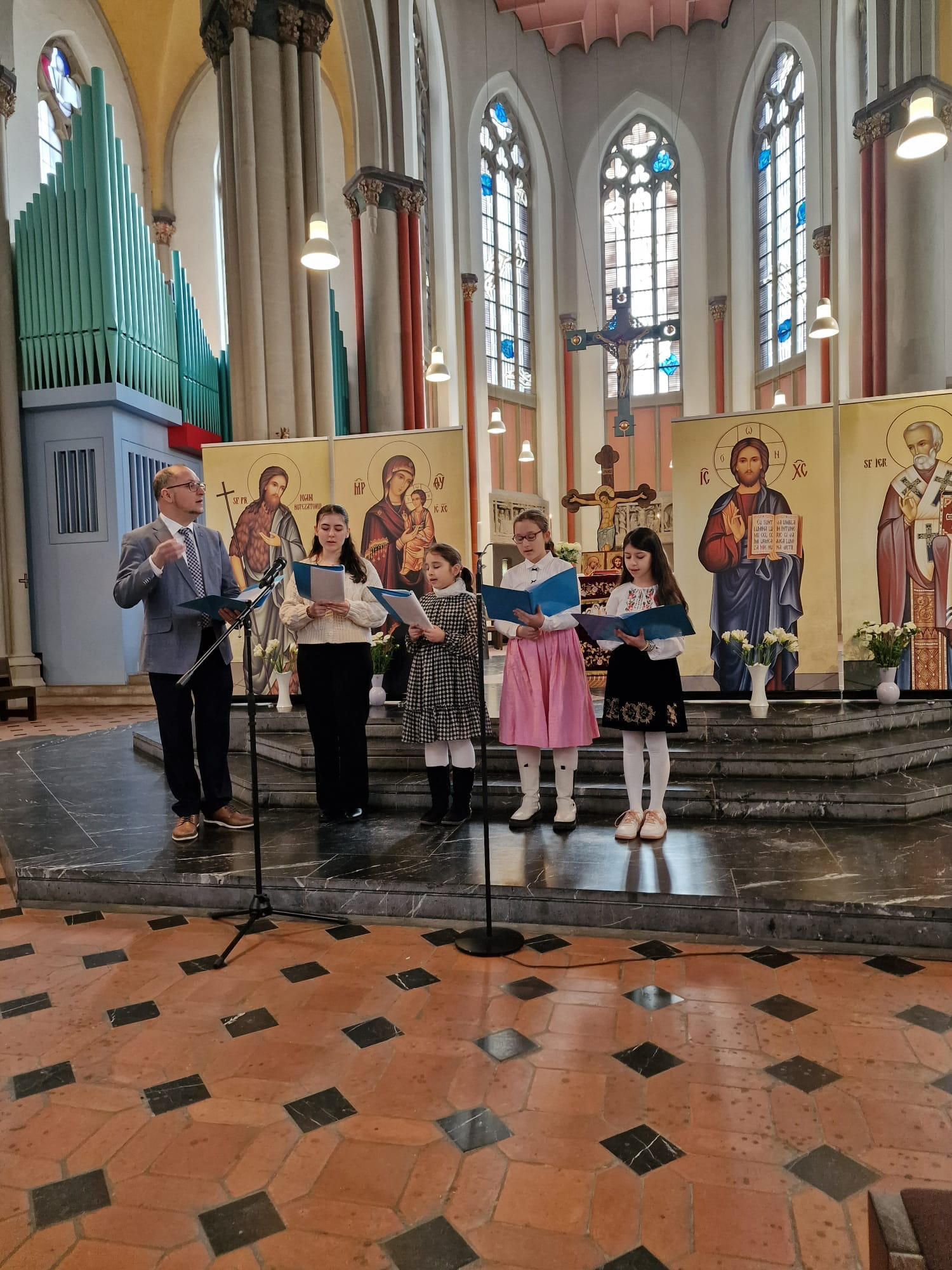 Am Sonntag, den 10. März 2024, fand das traditionelle Frühlingsfest der Kinder der Pfarrei Düsseldorf statt. Organisiert mit viel Hingabe von Frau Lehrerin Ioana Pașca, unterstützt von Frau Lehrerin Miruna Sandu und Herrn Cezar Dima, Tenor an der Oper Düsseldorf, brachte das Fest viel Freude für die Anwesenden.Das gesamte Programm, das aus Liedern und Gedichten zu Ehren der Mutter und des Frühlings bestand, hob die künstlerischen Talente der Kinder hervor und bot ihnen den notwendigen Kontext, um die Liebe und Wertschätzung der Erwachsenen zu spüren und sich der Glaubensgemeinschaft zugehörig zu fühlen.Pater Erzpriester Dr. Iosif Cristian Rădulescu dankte den Kindern, den Organisatoren und den Eltern, die dieses emotionale Fest möglich gemacht haben.
